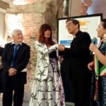 In rappresentanza degli artisti del Sudamerica la messicana Cecilia Salaices, che indossava un abito folkloristico, molto colorato, del suo paese con una corona di fiori tra i capelli e che ha esposto un dipinto dell’artista messicana Mirta Maranca che la ritrae con lo stesso abito che ha indossato quella sera all’inaugurazione della Biennale.