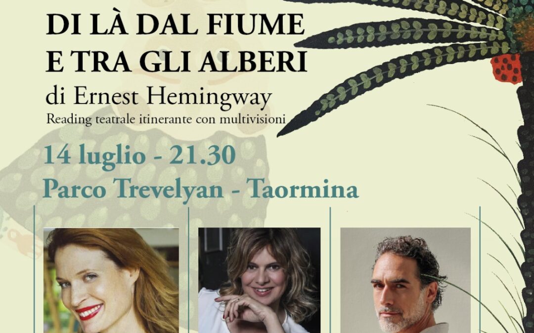 Il festival Taormina Arte presenta in anteprima un reading poetico tratto dal romanzo di Ernest Hemingway Di là dal fiume e tra gli alberi, in programma venerdì 14 luglio, alle ore 21:30 presso la Villa Comunale di Taormina.
