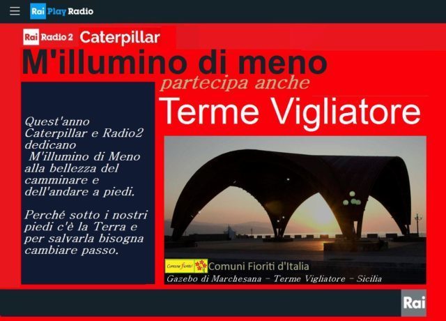 Anche quest’anno il Comune di Terme Vigliatore aderisce all’iniziativa “M’illumino di meno”. Dal 2005 la trasmissione di Rai Radio2, Caterpillar, chiede ai suoi ascoltatori di spegnere tutte le luci che non sono proprio indispensabili.