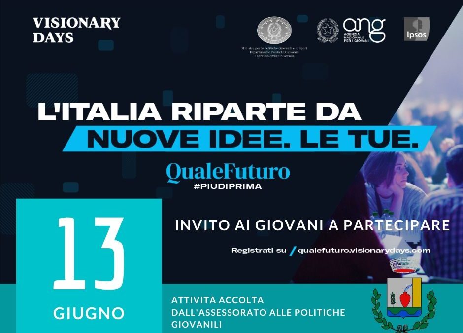 L’Assessorato alle Politiche Giovanili del Comune di Terme Vigliatore ha deciso di accogliere e promuovere “Quale Futuro”: la prima maratona digitale dei giovani di Visionary Days che si terrà online sabato 13 Giugno, dalle ore 10 alle 18.