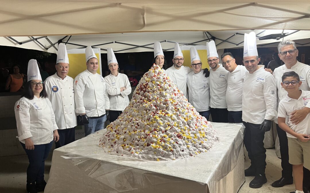 Venetico in festa per un traguardo straordinario di pasticceria e non solo. Infatti, il 12 luglio è stato realizzato il record del “bianco e nero” più grande d’Italia. Una sfida lanciata dal giovane pasticcere Vincenzo La Monica con la famiglia, titolari del Bar Pasticceria La Monica a Venetico Marina in provincia di Messina, in collaborazione con l’associazione pasticceri italiani Conpait e con il supporto di alcuni sponsor che hanno sposato il progetto e con il patrocinio del Comune di Venetico.